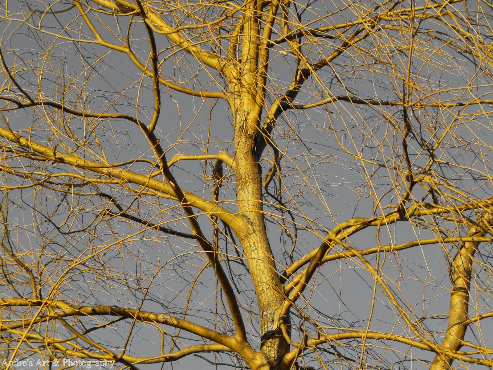 While taking photographs at the Brewer waterfront? I noticed how when the color orange was singled out on pictures of the bare trees? Their branches glowed an iridescent gold. Almost as if Rumpelstiltskin himself had woven them together from straw on nature's spinning wheel. So today I'd like to share that royally colorful experience with all of you as my closeout blog to the first month of 2015. Thus far it's been a pretty amazing year for me! Happy February and springtime yet to come!